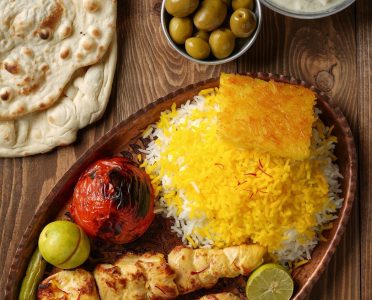 برنج ایرانی با دانههای کشیده و عطر ناب زعفران، همراهی بینقص برای این خوراکهاست.