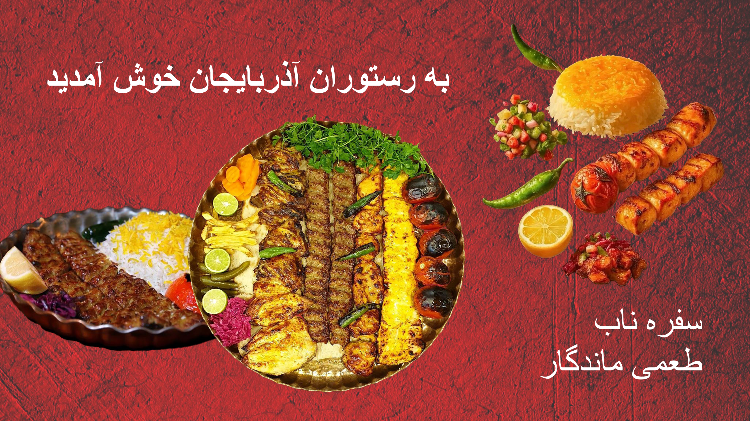 غذاهای ایرانی رستوران آذربایجان، ترکیبی از خورشتهای اصیل، کبابهای متنوع و جوجههای لذیذ است که همگی با برنج خوشعطر ایرانی سرو میشوند.